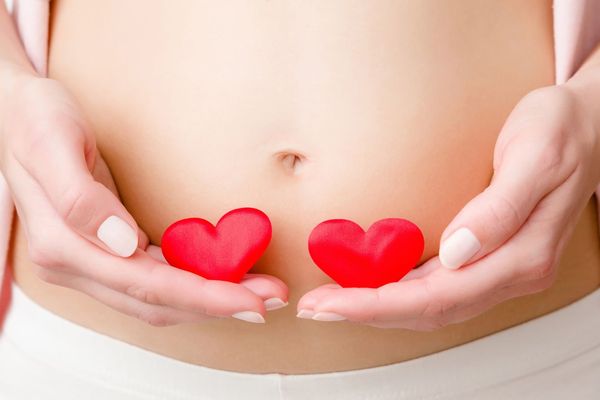 Young woman’s hands holding two red bright hearts on naked belly. Emotional loving moment in pregnancy time. Twins babies expectation. Love, happiness and safety concept. Close up. Front view.Bérengère de Traversay2026-02-19T15:07:14+01:00